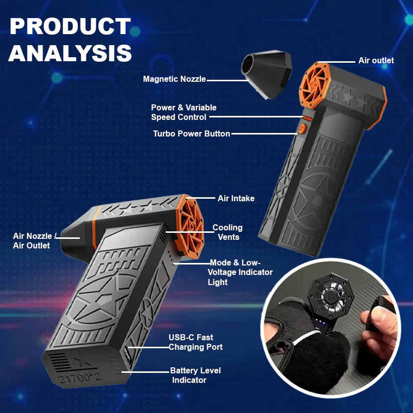 Snow Master Pro makes snow removal effortless, letting you clear your driveway quickly and easily. With its powerful airflow and adjustable settings, you'll enjoy more free time and less stress. USB type-C cable is included for fast charging.